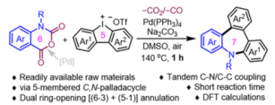 [19] L. Huang, Y.-N. Tian, S. Ren, J. Wang, Y. Xiao, Q. Zhu*, S. Li*. Palladium-catalysed dual ring-opening [3 + 4] annulation of isatoic anhydrides with cyclic iodoniums to build tribenzo[b,d,f]azepines and a mechanistic DFT study. Org. Chem. Front. 2022, 9, 6259-6264. (SCI一区)