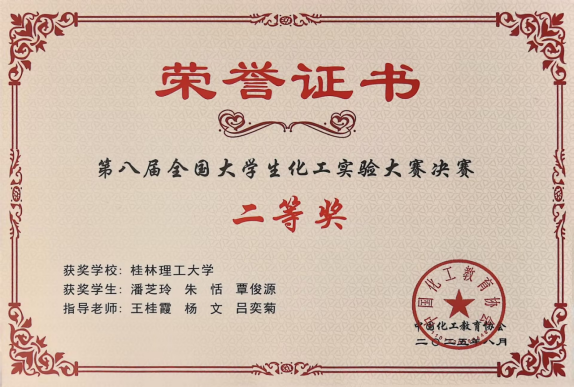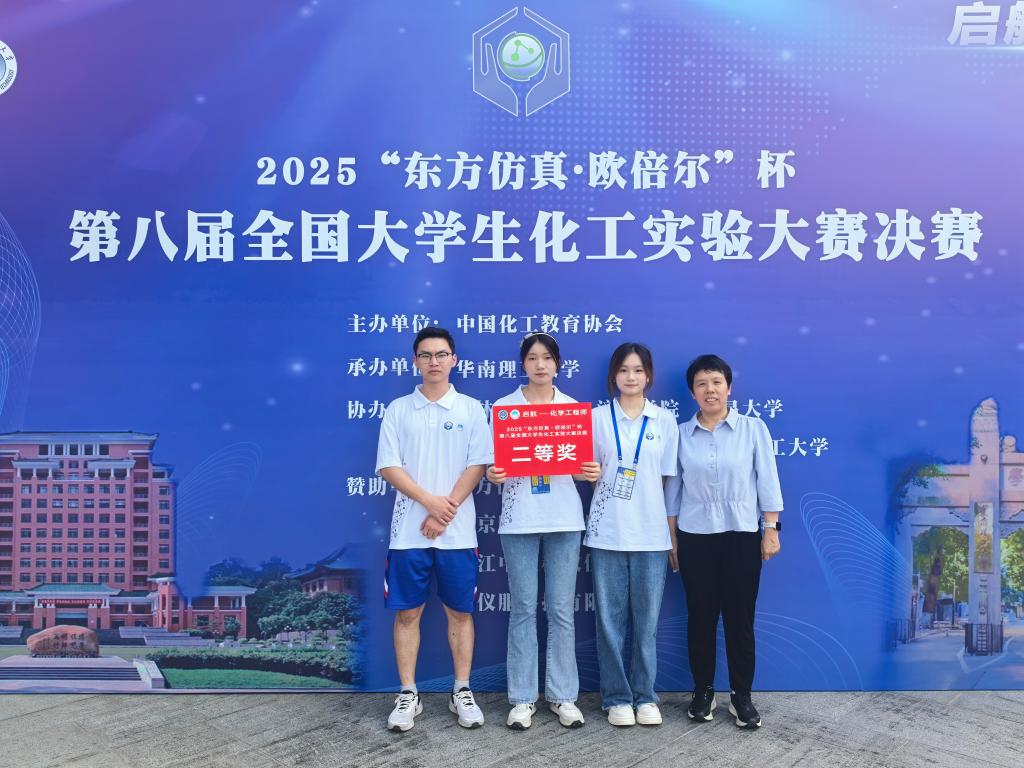 2025年8月8日至11日,由中国化工教育协会、教育部高等学校化工类专业教学指导委员会主办的“东方仿真·欧倍尔”杯第八届全国大学生化工实验大赛总决赛在华南理工大学顺利举行。本届大赛以“启航—化学工程师”为主题,覆盖全国六大赛区366所高校、2400余支队伍,经分区赛选拔,84支精英队伍晋级总决赛。 我院化工23级本科生潘芝玲、朱恬、覃俊源三位同学,在指导老师的悉心指导下,最终获得全国二等奖的优异成绩,另外,我校作为西南赛区承办单位获得了最佳组织奖。 图1:全国总决赛二等奖证书 图2:华南理工大学比赛现场 图3:颁发77779193永利(中国)集团优秀组织奖 (一审:王桂霞; 二审:马文硕;三审:何方 )