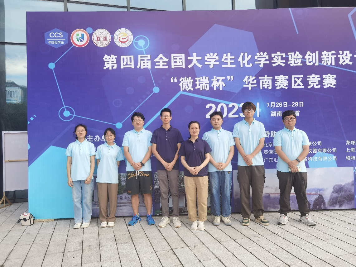 导航痕迹 当前位置: 首页 >> 教育教学 >> 应用化学专业评估 >> 正文 我院师生参加第四届全国大学生化学实验创新设计大赛华南赛区竞赛 2023年7月26日至28日,第四届全国大学生化学实验创新设计大赛 “微瑞杯”华南赛区竞赛在湖南省湘西土家族苗族自治州吉首市举行,我院应用化学教研室主任袁亚利教授率队参加。 在指导老师和参赛学生的共同努力下,黄艺鹏老师指导的参赛作品获新创组的二等奖,袁亚利老师指导的参赛作品获得科普组的三等奖。 此外,在竞赛期间,袁亚利和黄艺鹏参加了实验室建设与实验教学研讨会,学习了北京师范大学、厦门大学、吉首大学等高校的优秀参赛作品和实验教学经验,为我校应化专业今后的实验教学工作提供新思路。 参赛师生合影 【 发布日期:2023-08-29 浏览次数: 】 上一条:我院袁亚利教授受邀为百色学院作课程思政建设报告 下一条:我院聂瑾芳教授受邀为江西师范大学作专题讲座