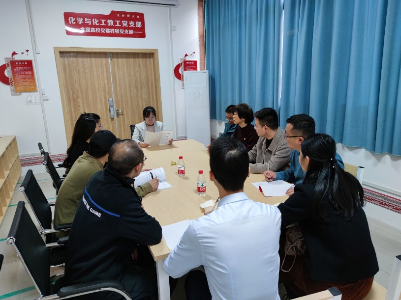 导航痕迹 当前位置: 首页 >> 永利集团 >> 永利集团 >> 正文 【组织生活会】我院应用化学教工党支部召开2022年度组织生活会 作者:邹建梅 发布日期:2023-03-20 浏览次数: 3月15日,我院应用化学教工党支部于12栋全国样板工作室召开组织生活会。本次会议由支部书记袁亚利主持,支部全体党员参加。 会议伊始,袁亚利同志代表支部委员会向大会述职,汇报了2022年度党支部的工作情况,并对支部建设存在的问题进行了分析。随后,党员同志们围绕支部工作开展和支部建设提出意见和建议。紧接着,在批评与自我批评环节,全体党员就自己在过去一年中理论学习、教学、科研、生活等方面进行批评与自我批评、剖析原因。并且,支部党员之间还进行相互批评、相互指正。最后,全体党员同志针对自身及他人存在的问题提出了整改建议和整改时限,支部综合分析党员日常表现及民主测评结果后对全体党员进行了评定。 通过本次组织生活会,支部党员充分认识到自身存在的问题,找到了自己与先进典型、榜样之间的差距。相信经过下一阶段的积极整改与落实,将推进了支部党员的素质建设,为保持支部党员的先进性打下了坚实的基础。 会议现场 上一条:我院召开第一季度意识形态工作专题会议 下一条:【组织生活会】我院本科生第四党支部开展组织生活会