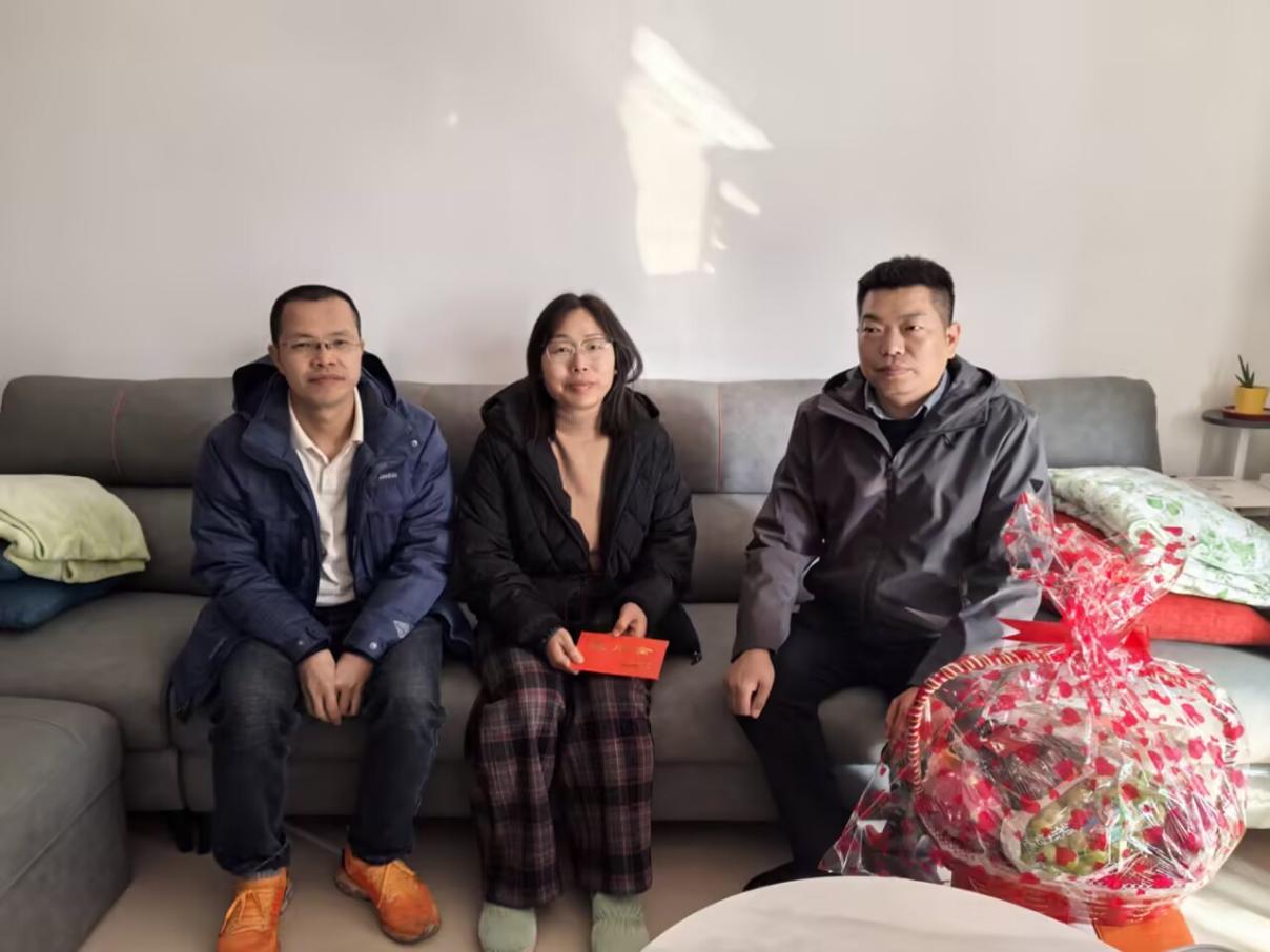 春节将至,岁寒情暖,在2025年新春佳节来临之际,学院开展新春走访慰问活动,分别慰问了党外人士代表、教学工作代表、科研工作代表、辅导员代表及家庭困难的教师,代表学校送上新春的诚挚问候和美好祝福。学院工会相关同志陪同慰问。 此次慰问活动旨在增强学院的凝聚力,让教职工感受到学院大家庭的温暖。学院始终重视对所有教职工的关怀工作,通过走访慰问,不仅传递了学院的关心与祝福,也进一步了解了教职工的生活状况和需求,为今后更好地开展学院教职工凝心聚力工作打下了基础。 彭代江书记、工会副主席李子院慰问张会香老师 匡小军院长慰问李建平、甄士杰、张伟颀 李少华副书记慰问袁亚利 (一审:马文硕 二审:李子院 三审:李少华)