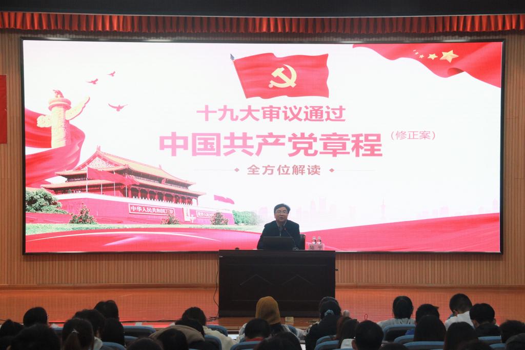 导航痕迹 当前位置: 首页 >> 永利集团 >> 党史学习教育 >> 正文 【党史学习教育】学院第二十二期预备党员培训班第七讲——《中国共产党章程》 作者:熊艳 梁朝东 发布日期:2021-11-27 浏览次数: 11月26日,为了使我校预备党员认真学习党章、严格遵守党章,陆平教授为预备党员讲授主题为《中国共产党章程》专题党课。 首先,陆平教授解读习近平新时代中国特色社会主义思想,坚持学而信、学而思、学而用、学而行,真正用习近平新时代中国特色社会主义思想武装头脑,矢志不渝为实现中华民族伟大复兴的中国梦而努力奋斗。随后,陆平教授指明了全体党员学习《十九大党章》的要求:“认真学习领会习近平新时代中国特色社会主义思想”,“深刻把握新时代新使命新征程”,“切实把思想和行动统一到党的十九大精神上来”。最后,陆平教授指出要想学习好党章,首先学好总纲。学习好总纲有利于广大党员了解党的性质和宗旨、党的指导思想、党的奋斗目标和历史任务等若干重大问题。 本次党课培训增强了我校预备党员学习贯彻党章的自觉性和坚定性,始终把学习党章、遵守党章、贯彻党章、维护党章作为一项重大政治任务抓紧抓好,切实维护党章的严肃性和权威性,把党章体现到党的各项工作和党员行动之中。 党课现场(一) 党课现场(二) 上一条:【党史学习教育】学院举行乡村振兴专家工作站挂牌仪式 下一条:【党史学习教育】学院第二十二期预备党员培训班第六讲——《学风建设与党员的先锋模范作用发挥》