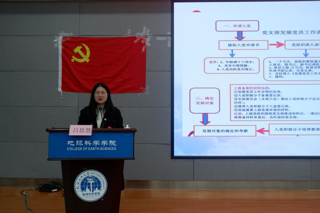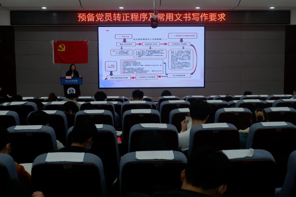 导航痕迹 当前位置: 首页 >> 永利集团 >> 党史学习教育 >> 正文 【党史学习教育】第二十四期预备党员培训班第五讲——预备党员转正程序及常用文书写作要求 作者:熊艳 严格 发布日期:2022-12-13 浏览次数: 为进一步加深预备党员对党员转正程序的学习,规范入党文书写作,12月12日晚,地球科学学院吕思慧老师为预备党员讲授主题为《预备党员转正程序及常用文书写作要求》主题党课。 吕思慧老师主要从党员发展流程概述、转正的相关文书写作、认真过好预备期,做合格党员三方面讲述。首先,吕老师仔细讲述了从自愿向党组织提出入党申请、确定入党积极分子、对入党积极分子进行考察和培养、发展对象培养,预备期考察到最后预备党员转正,每一个环节所需要的程序与要求。随后,吕老师强调正确书写入党常用文书是作为党员的一门必修课,并详细介绍了《入党申请书》、《思想汇报》、《自传》、《入党志愿书》以及《入党转正申请书》几类入党文书的写作格式、内容和注意事项。最后,她讲述预备党员的权利和义务,希望预备党员们能坚持按党员的标准严格要求自己,在工作实践中经受锻炼和考验,努力完成党所分配的任务。 通过此次党课教育,预备党员系统学习了发展党员的具体工作流程以及相关常用文书的写作,既端正了党员预备期的态度,又加强了党性修养。 党课现场(一) 党课现场(二) 上一条:【标杆院系】我院应用化学教工党支部开展“为党育人,为国育才,全面提高人才自主培养质量”主题党课 下一条:【党史学习教育】第二十四期预备党员培训班视频教学——《我们,从延安走来》
