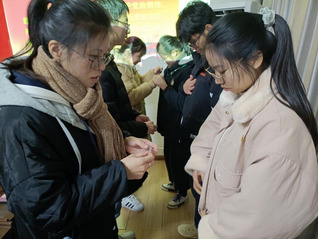 导航痕迹 当前位置: 首页 >> 永利集团 >> 不忘初心牢记使命 >> 正文 【党员发展】77779193永利官网集团本科生第一党支部召开预备党员接收大会 作者:张伟颀、覃锋锋 发布日期:2020-12-17 浏览次数: 2020年12月16日19:30,我院本科生第一党支部在09607会议室召开预备党员接收大会。本次会议全体党员同志参加,其中有表决权党员为六名,主要对是否接收邓树群、蒋琳、倪振斌三名发展对象为支部预备党员进行讨论和表决。 会议伊始,郑靖萱同志对本次大会流程进行简单介绍并宣布接收大会开始。随后,发展对象邓树群、蒋琳、倪振斌分别汇报了自己的入党动机,并从思想、学习、工作、生活等方面对自身进行总结,表明了自己向党组织靠拢的决心。接着,入党介绍人分别介绍了发展对象的基本情况,并对其能否加入党组织表明了态度,同时支委会向大会汇报了发展对象的政治审查报告。随后在场的党员同志对发展对象进行更深一步的提问和了解后,正式党员根据其汇报及入党介绍人意见进行投票。最后,由郑靖萱同志宣布大会决议:邓树群、倪振斌6票赞成、0票反对,0票弃权;蒋琳5票赞成、0票反对,1票弃权。根据结果,大会同意接收三名发展对象成为中共预备党员。 全体党员同志对三名新同志的加入表示祝贺与欢迎,并希望三名同志在今后学习和工作生活中,以发展对象考察期的努力为起点,不断提升自我,牢记初心,用党员标准严格要求自己,改正自己的不足,努力成长为一名合格的中共党员。 郑靖萱同志主持会议 支部党员同志对发展对象材料进行审查 正式党员为预备党员佩戴党员徽章 全体党员同志对党旗宣誓 上一条:【不忘初心、牢记使命】我院举办2020年党支部工作总结及评优促建活动 下一条:【不忘初心、牢记使命】研究生第二党支部毕业生党员交流分享会