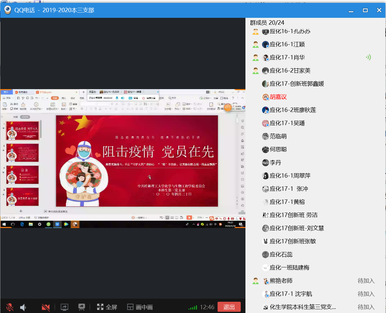 为落实习近平总书记就广大党员、干部要在打赢疫情防控阻击战中发挥积极作用作出的重要指示,发挥广大党员不忘初心、牢记使命,挺身而出的先锋模范作用,我院本科生第三党支部于4月30日通过线上召开“阻击疫情,党员在先”主题学习会,会议由曾小玲同志主持,支部全体党员同志参加。