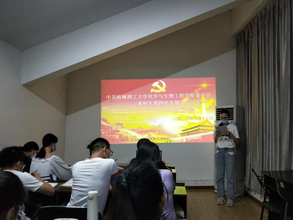 6月12日晚,我院本科生第四党支部于雁山校区09607会议室召开预备党员转正大会,对刘志飞等4名预备党员的转正问题进行审议和表决。大会由王少杨同志主持,支部书记梁精华出席本次会议,支部全体党员参加本次大会。