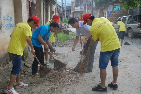 实践团成员们在开展美丽广西,清洁乡村”活动
