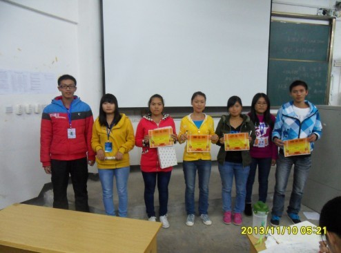 此次以“用专业眼光,大胆说出爱”为主题的专业术语表白活动受到同学们积极响应,共收到作品八十多份。同学们在抒发感情的写作基础上写出的专业术语表白词显得别具一格。日前,优秀作品的评选工作已经完成,评选结果已经出炉。11日晚,新闻中心的工作人员到获奖者所在的自习室为获奖者颁发了奖状及奖品,并与获奖者合影。在同学们的热烈的掌声中,此次比赛圆满结束。