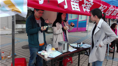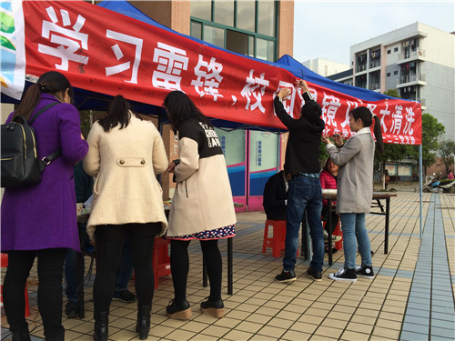 本次“学雷锋”活动于3月18日在雁山校区2号食堂门前举行,在三个党支部所有成员(一支部23人,二支部23人,三支部17人,共63人)的共同努力下,活动得以顺利进行。此次活动主要内容:帮助校园内的同学清洗眼镜、免费维修眼镜,并赠送眼镜布、眼镜盒和镜片清洗液等小礼品。