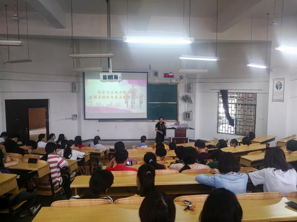为保障学校第三届校园马拉松竞赛活动顺利进行,维护好比赛期间赛场秩序,确保参赛运动员安全。5月23日中午,我院在雁山校区05101教室召开了第三届校园马拉松竞赛安全动员大会。学院党委副书记江玲,辅导员黄道坤及全体参赛同学参加了此次动员大会。