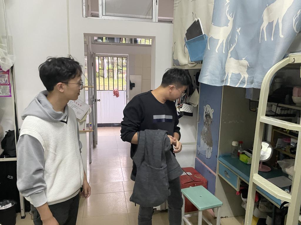 导航痕迹 当前位置: 首页 >> 学生工作 >> 学生活动 >> 正文 【一月一联查】学院开展11月宿舍安全隐患大排查 作者:黄道坤 发布日期:2021-11-26 浏览次数: 为加强我院学生宿舍安全防护意识,引导同学们养成良好的卫生习惯。11月25日中午,学院学生工作办公室全体辅导员深入本科生、研究生宿舍开展安全隐患排查工作。 本次安全隐患排查,辅导员们重点对所带年级宿舍是否存在使用违规电器、是否存在矛盾冲突、是否存在私自外宿学生、宿舍内务是否整洁等情况进行了全方位的检查工作。过程中,辅导员们认真细致地落实宿舍安全检查工作,确保不放过每个死角,并提醒同学们,应当注意宿舍水电安全,时时刻刻确保自身安全;防火防盗措施严记于心;离开宿舍前关好门窗、切断电源。 本次辅导员深入宿舍,对学生进行了安全安全教育,引导和加强同学们提升了安全意识,让“安全无小事”的观念深入每位同学心中。 辅导员对女生宿舍进行检查 辅导员对男生宿舍进行检查 上一条:学院举办“创客优才奖学金”颁奖典礼 下一条:学院举办2022年度征兵宣传动员大会