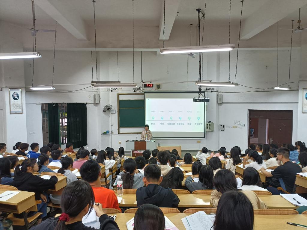 导航痕迹 当前位置: 首页 >> 学生工作 >> 学生活动 >> 正文 我院邀请保研学生开展英语四级专题培训 作者:梁精华 张伟颀 发布日期:2022-11-04 浏览次数: 为进一步提升我院学生英语听说读写能力,扎实推进学院英语四级专项工作,11月4日,我院邀请保研学生薄开雯、黄悦为2022级学生开展英语四级过级经验分享,并围绕四级考试内容做英语四级专题培训。培训在05103教室开展,2022级全体学生参加。 培训伊始,薄开雯向同学们介绍了英语四级的备考指南,详细说明了英语四级考试的考察范围、分数占比、考场规则,帮助同学们更好地了解英语四级考试。黄悦从英语四级各专项分数占比、听力技巧、答题技巧、写作方法等方面,结合实例讲解了英语四级答题思路和做题技巧。针对英语四级,她提出了自己备考中遇到的问题和解决方法,现场互动频繁,培训情况反馈良好。 本次英语四级专题培训加深了同学们对四级考试的理解,帮助同学们更系统、更全面、更准确地备考英语四级,对同学们进一步复习英语四级,对学院进一步营造良好学风具有重要意义。 保研学生黄悦在做经验分享 保研学生薄开雯在做经验分享 上一条:学院举行入伍经验分享会 下一条:【清廉学院】我院组织开展“清廉学风,廉洁班级” 主题教育活动