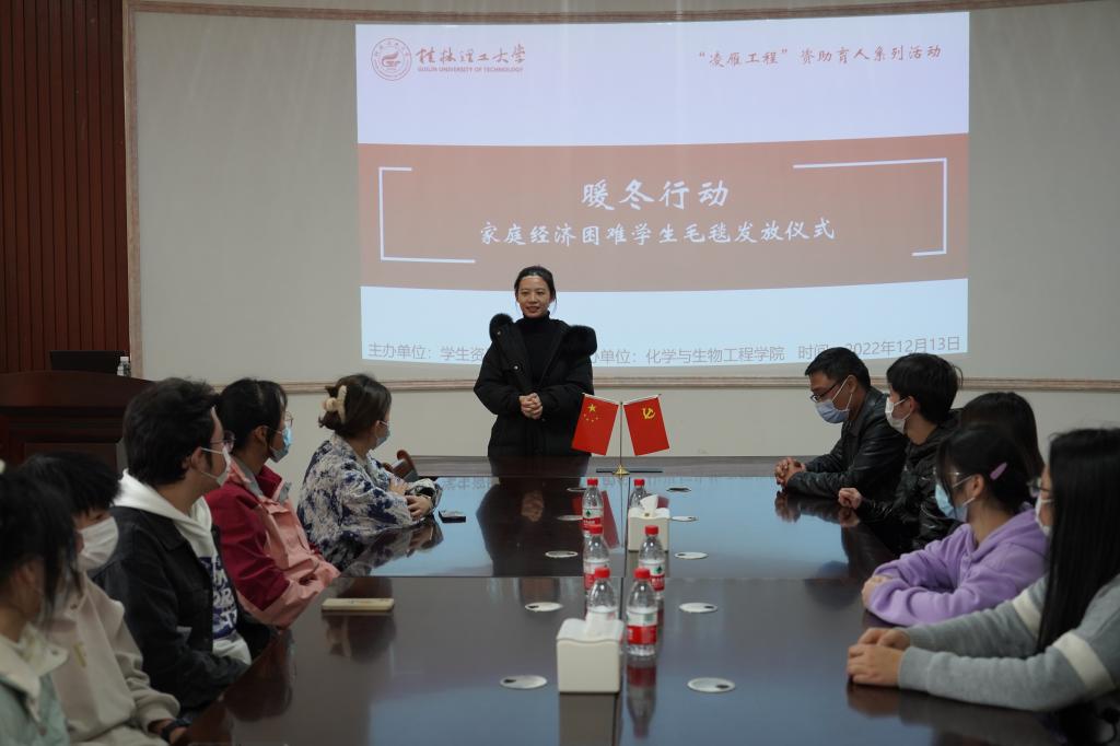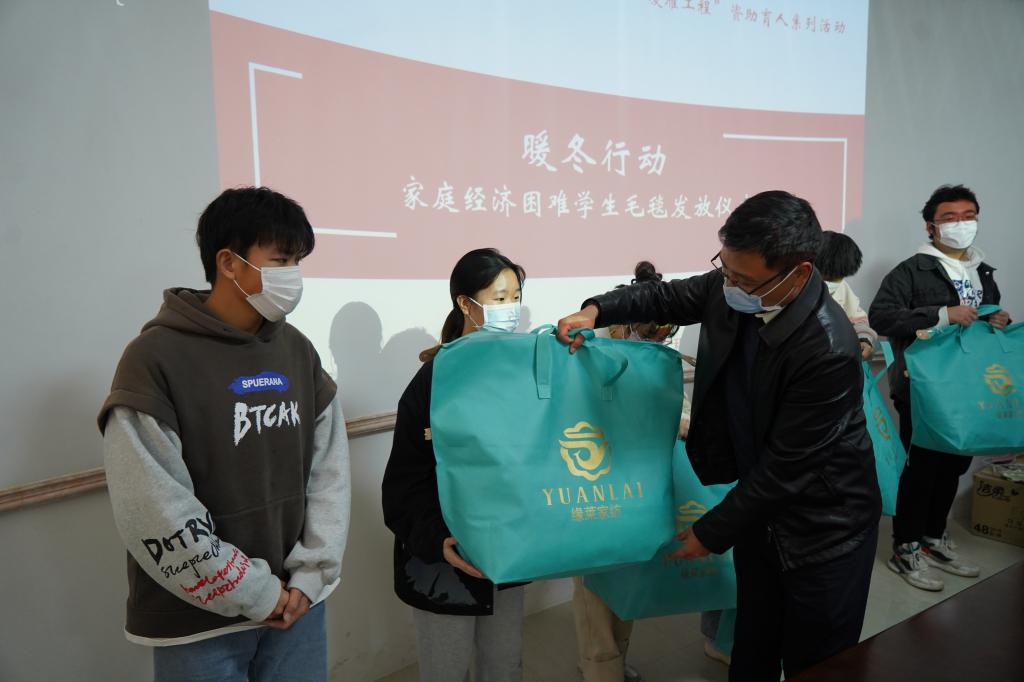 导航痕迹 当前位置: 首页 >> 学生工作 >> 学生活动 >> 正文 【资助育人】学院开展暖冬行动为家庭经济困难学生发放过冬毛毯 作者:梁精华 发布日期:2022-12-13 浏览次数: 为贯彻落实高校家庭经济困难学生资助政策,进一步帮助家庭经济困难学生更好地学习生活,解决家庭经济困难学生的现实需求,2022年12月13日,学院开展了“暖冬行动”为家庭经济困难学生发放过冬毛毯。学院党委副书记李少华、辅导员梁精华参与发放仪式。 发放仪式上,梁精华老师结合国家资助政策和学校资助育人体系,讲解了暖冬行动的初衷和目的,希望同学们在收到暖冬物资后树立“自助助人”的意识,积极传递正能量。随后,党委副书记李少华老师为在场学生发放过冬毛毯,并勉励同学们要保持乐观的精神风貌,常怀感恩之心。同学们纷纷表示感受到了学校和学院的温暖,并会以昂扬向上的姿态面对大学生活。 本次暖冬行动加深了学院和家庭经济困难学生的联系,为进一步凝聚更多的育人力量提供助力。据悉,暖冬行动是学院落实学生资助政策和资助育人的重要举措,下一步,学院还将持续开展一系列针对家庭经济困难学生的帮扶资助工作,力争使每一位家庭经济困难学生都能感受到来自学校和学院的关怀,更好助推学校资助育人工程建设发展。 活动现场 活动现场 活动合影 上一条:学院精心上好2023年春季学期“开学第一课” 下一条:【资助育人】学院开展“党员一对一”家庭经济困难学生学业互助活动