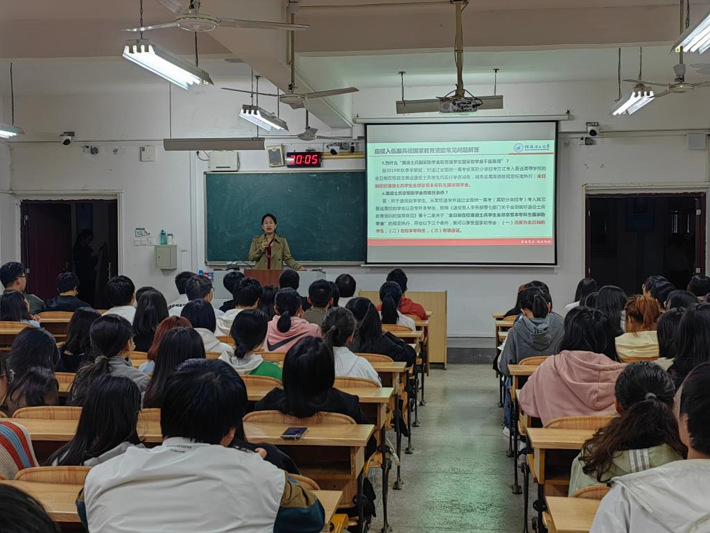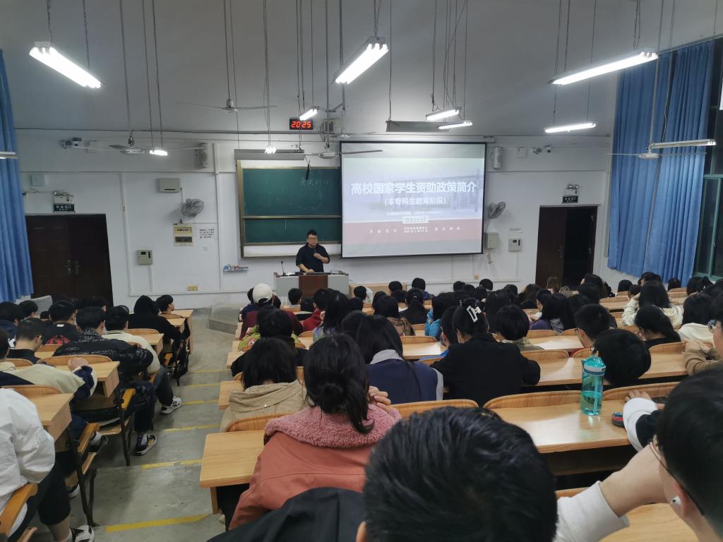 导航痕迹 当前位置: 首页 >> 学生工作 >> 学生活动 >> 正文 资助育人文化节 | 我院开展2023年学生资助政策宣讲会 作者:梁精华 许家松 发布日期:2023-04-24 浏览次数: 为进一步宣传落实好党和国家的资助政策,推进学院学生资助工作发展,加大学生资助政策宣传力度,促进高校国家资助政策深入人心。4月23日,我院在雁山校区06104、06206、06401、07318教室面向学院全体学生组织开展了资助政策宣讲活动,年级辅导员梁精华、王凯浩、张伟颀、朱皓作为主讲人进行本次宣讲。 宣讲会上,各年级主要围绕国家“奖、助、贷、勤、补、绿色通道+校内资助”多元混合体系进行讲解,重点解读了国家奖学金、国家励志奖学金、自治区人民政府奖学金、国家助学金和应征入伍服兵役国家教育资助等资助政策。其中,辅导员张伟颀重点对比了今年国家助学金资助等级和资助金额与往年的不同,提醒同学们注意政策变化;辅导员梁精华则围绕国家助学贷款详细讲解了贷款的申请条件、申请对象、申请流程;辅导员王凯浩结合学生入伍情况详细讲解了应征入伍服兵役教育资助金额、申请时间和所需材料等;毕业班辅导员朱皓针对毕业年级特点,重点讲解了毕业生贷款还款最新政策和注意事项等。 本次活动的开展,有效地加深了学生对国家资助政策的了解,提高了学生的政策知晓率,进一步加强了他们的感恩意识和责任意识,增强了他们参与活动的积极性,对进一步推进我院资助育人工作具有十分重要的意义。 2022级宣讲现场 2021级宣讲现场 2020级宣讲现场 2019级宣讲现场 上一条:资助育人文化节 | 我院开展“青春筑梦新时代 资助伴我向未来”励志成长主题观影活动 下一条:我院召开2023年春季学期学生安全教育主题班会