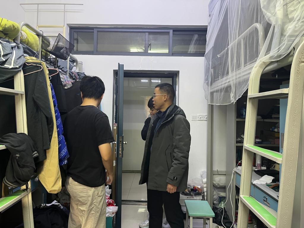 导航痕迹 当前位置: 首页 >> 学生工作 >> 学生活动 >> 正文 学院开展研究生宿舍安全隐患专项排查工作 作者:马亚博 发布日期:2024-12-26 浏览次数: 为进一步提升研究生寝室安全意识,优化研究生学习生活环境,养成良好生活习惯。12月24日下午,学院开展了研究生宿舍安全隐患专项排查工作,学院分管研究生副院长孔翔飞,研究生辅导员马亚博和研究生会成员深入雁山校区30#、31#、32#研究生宿舍进行安全专项检查。 专项检查中,学院重点围绕宿舍是否存在使用违禁电器、插排放在被褥上或被覆盖遮挡、无人时插排不断电、电源线路插接串联及缠绕床体、堆放废箱等杂物等现象进行检查。其间,学院辅导员对研究生进了行安全知识讲解和宣传工作,不断叮嘱同学们务必注意宿舍安全,并针对发现的安全问题和卫生问题指导宿舍成员限期整改并督促改进。孔翔飞提醒研究生同学们,冬季气候干燥、天气寒冷,注意作息规律。他强调,同学们要严禁使用违规电器,养成“离室必断电”的良好用电习惯,杜绝危险用电,合理规划用电,增强安全意识,加强自我监督,做到防患于未“燃”。 通过此次专项检查,不仅加强了研究生宿舍用电安全、防火安全及财物安全等方面的教育和管理,更进一步增强了研究生的安全意识和责任意识,规范了研究生的安全防范行为,为平安校园打下坚实基础。 (一审:马亚博 二审:黄道坤 三审:李少华) 宿舍检查现场一 宿舍检查现场二 宿舍检查合影 上一条:学院成功举办2025年全校大学生朋辈心理辅导技能大赛院内选拔赛 下一条:学院成功举办茶话会活动