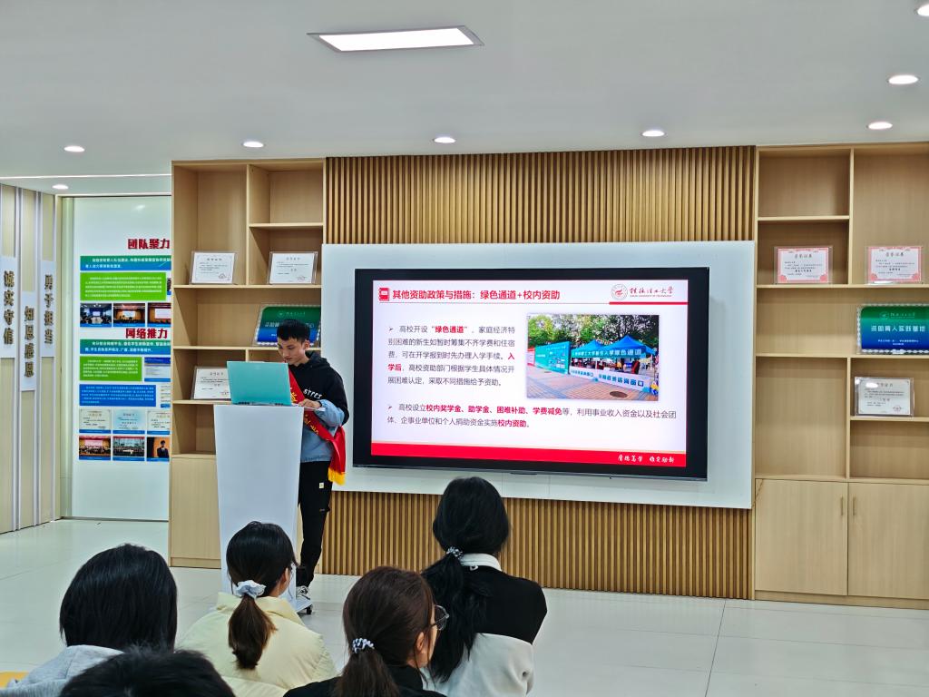 导航痕迹 当前位置: 首页 >> 学生工作 >> 学生活动 >> 正文 【凌雁工程】我院在学校资助育人实践基地开展资助政策宣讲活动 作者:马亚博 发布日期:2025-11-06 浏览次数: 为加强国家及学校资助政策的宣传力度,确保广大学生全面了解资助政策,11月4日晚,我院在学校资助育人实践基地开展资助政策宣讲活动,资助宣传大使何灿丽、韦砚俊、陆鹏飞、杨兰雨等4位同学为100余名学生进行了深入细致的政策宣讲。 活动伊始,学校学生资助宣传大使陆鹏飞对学校资助育人实践基地的功能和作用进行了全面介绍,为同学们搭建了一个全面了解资助政策的平台。随后,何灿丽、韦砚俊、杨兰雨等3位同学对国家和学校的各项资助政策进行了深入解读,内容涵盖奖学金、助学金、国家助学贷款、勤工助学、参军入伍及基层就业学费补偿贷款代偿、学费减免等多种形式的内容,为大家答疑解惑。 本次资助宣传大使宣讲国家资助政策活动,让同学们对国家和学校资助政策有了更深入的了解,激发了同学们自强不息、奋发向上的热情,提升了学院资助育人实效。 宣讲会现场一 宣讲会现场二 宣讲会现场三 宣讲会现场四 一审:马亚博;二审:黄道坤;三审:李少华 上一条:我院召开2025年秋季学期研究生培养工作会议 下一条:【凌雁工程】我院开展“我是国奖生”优秀事迹宣讲会