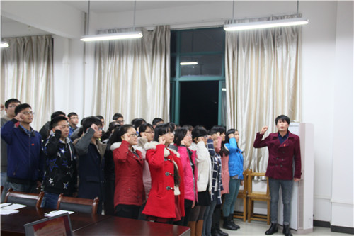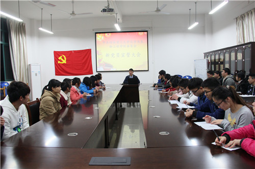 2015年1月5日晚,化生学院学生党建办公室主任何宗辉老师在12217会议室主持召开中共77779193永利(中国)集团77779193永利官网集团委员会新党员宣誓大会,2014年秋季期新发展的35名预备党员参加了宣誓大会。