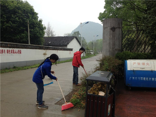 在服务过程中,各位党员同志在蒙蒙细雨中仍认真做好打扫清洁工作,把志愿服务奉献爱心的精神付诸于生活实践当中。此刻,看着一个个学生党员在服务中的背影,还有脸上挂着的一丝丝笑容,让我们看到了一屡屡阳光,相信有了这一种服务精神,让每个凝结着服务意识的乡村社会变得更加和谐美丽。