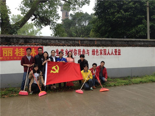 为践行社会主义核心价值观,学习雷锋精神,树校园新风,提升学生党员的人文素养,促进学生党员的思想政治觉悟,加强支部党员的服务意识,传承雷锋艰苦朴素的优良作风,2015年3月29日化生院本科一支部成员到大埠乡开展了清洁乡村的服务活动。