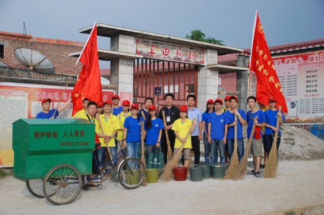 为响应“美丽广西,清洁乡村”的号召,带领村民积极参加到”美丽广西,清洁乡村”活动中去。7月13日下午,我院与博文管理学院“三下乡”暑期社会实践团到贺州市珊瑚镇卫田村开展清洁乡村活动。在珊瑚镇卫田村党委组织第一书记杨公银、我院团委书记周德海老师和博文管理学院黄大建老师的带领下,两支队对卫田村的主干道路的树叶,杂物等垃圾进行了清理,志愿者们积极投入到活动中去,充分展现了当代大学生到基层为农民服务的“美丽广西,青年当先”的精神。活动结束后两支队伍合影留念。