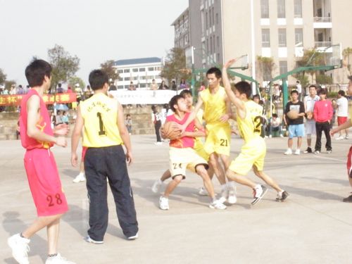 场地虽小,却充满了激情的呐喊声。天气炎热,却也无法阻挡同学们观看这场比赛的热情,为自己的班级加油喝彩。每一次球撞击出的鼓点,都震撼着人心;每一个人的心随着球不断的提起、再落下。化生学院研究生勇猛的健儿们,带着球不断的冲锋,夺分,再冲锋,再夺分。挂满汗水的脸上依旧带着认真、紧张与兴奋的表情。他们像一只只矫健的猎豹,蓄势待发,等待着时机,厮杀,争夺胜利的大餐。看!研究生队球员正带球突破,上篮,得分。一时间,大家笑着、叫着,鼓掌,叫好声不断。两方拉拉队员互不示弱,扯着嗓子喊出自己最响亮的口号。