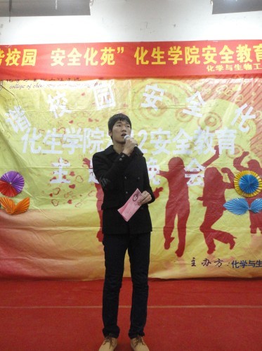 为了响应学校冬季学生安全教育月的文件精神,加强同学们的安全意识,化生学院于12月14日晚在04110教室举办2012安全教育主题晚会。出席本次晚会的嘉宾有院团委书记周德海老师、10级辅导杨晓老师以及12级辅导何宗辉老师。化生学院三百多名学生参加了晚会。