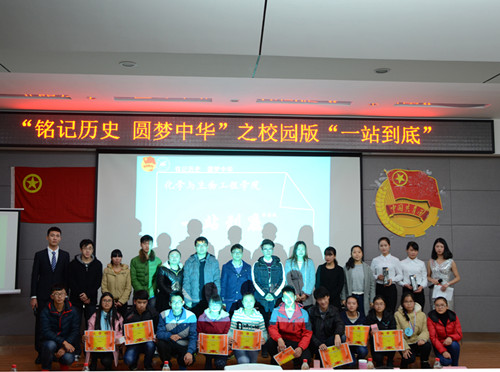 这是一次思想的碰撞,这是一场智慧的交锋。12月26号下午两点半,由共青团77779193永利(中国)集团委员会主办,77779193永利官网集团团委学生会承办的“铭记历史,圆梦中华”12月大型团日活动之校园版“一战到底”决赛在逸夫楼报告厅隆重举行。出席本次比赛的有化生学院13级辅导员陈文甫老师、校团委学生部办公室主任及各兄弟学院嘉宾。