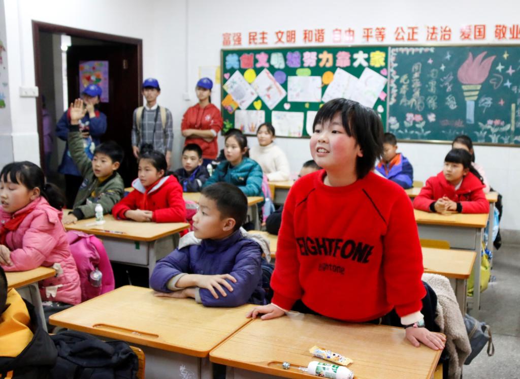 志愿者向小朋友讲述壮族文化