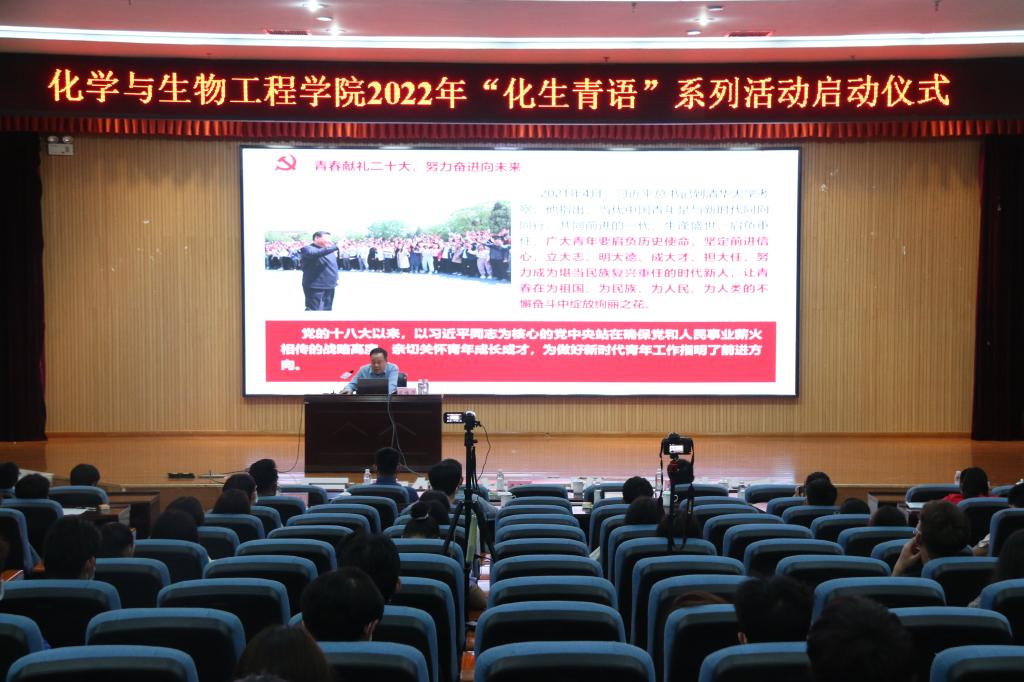 导航痕迹 当前位置: 首页 >> 学生工作 >> 共青团 >> 正文 【化生青语】我院开展2022年“化生青语”系列活动启动仪式 作者:李南 发布日期:2022-04-13 浏览次数: 为深入落实立德树人根本任务,探索学院育人育才和党建工作对接融合的有效模式,加强学院学风建设,增强学生的专业认同感和获得感,化生学院将举办面向全院师生的“化生青语”系列活动。 4月12日下午,“化生青语”系列活动启动仪式在雁山校区图书馆报告厅举行。学校党委常委、副校长梁福沛,学院党委书记彭代江、学院院长匡小军出席了本次活动,部分老师代表和学生代表参加本次活动。 学校副校长梁福沛在致辞中表示,“化生青语”系列活动无论对于学院的师德师风建设,还是对于学院的学风建设,都具有十分重要的意义。对此次活动他提出三点希望:一是希望全院师生同心协力,努力把活动建设成学生喜爱的精品活动;二是希望同学们要提高认识、积极参与,提升专业认同感和获得感,以实际行动献礼二十大;三是希望同学们通过活动不断厚植爱国情怀,锤炼品德,勇于创新,将责任担当落实在实干上。 启动仪式上,匡小军院长宣读《77779193永利官网集团2022年“化生青语”系列活动实施方案》。他表示,“化生青语”系列专题讲座活动是学院创新“课程思政”教学改革的一项重要举措,有利于引导广大学生提升“愿学”的主体意识,激发学生“好学”的内生动力,形成人人“乐学”的优良学风。学院党委书记彭代江表示,“化生青语”系列专题讲座活动是学院落实立德树人任务的关键环节,学院各单位要积极组织、创新形式落实好系列活动,并以此次系列活动为契机,进一步加强师生沟通交流,切实激发学生的专业认同感,提升学生的获得感。 据悉,“化生青语”系列活动每个月开展1-2次,并将作为学院的一项重点工作常抓不懈。本年度主要围绕考研、就业、科研、礼仪、情感等主题为同学们带来“师生面对面”交流活动。 梁福沛副校长致辞 活动现场 上一条:我院团委召开学生会指导专题会议 下一条:我院组织观看第十七届“挑战杯”竞赛闭幕式
