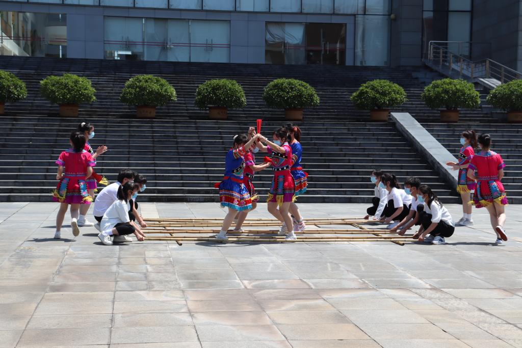 导航痕迹 当前位置: 首页 >> 学生工作 >> 共青团 >> 正文 我院组织开展喜迎二十大、永远跟党走、奋进新征程——“弘扬民族文化,促进民族团结”三月三主题表演活动 作者:王凯浩 发布日期:2022-04-04 浏览次数: “三月三”是中国多个民族的传统节日,是弘扬民族文化的盛会。为了更好的弘扬与传承优秀民族文化,促进大学生对民族团结与进步的认识提高,4月4日,我院壮乡社联合校艺术团以及学院少数民族学生与党员干部代表开展了“喜迎二十大、永远跟党走、奋进新征程”——“弘扬民族文化,促进民族团结”三月三主题表演活动。 活动伊始,观看了校艺术团带来的舞蹈“站在草原望北京”,随后由学院壮乡社表演了竹竿舞“广西尼地呀”。竹竿舞又称跳竹竿,是一个以团队合作为方式的舞蹈,具有浓厚的民族文化特色,是广西壮族民间舞蹈形式之一。此次活动引来无数师生的观看,随后,围观的同学纷纷加入了跳竹竿舞的行列里。初练竹竿舞的同学,有的因为跳错了步伐就被夹掉了鞋子,有的因乱踩竹竿而仰面朝天。在经过一系列的练习过后,学生们个个精神饱满,动作标准到位,持竿者在音乐的节奏中蹲、站等姿势变化多样,在有节奏、有规律的碰击声里,跳舞者在竹竿分合的瞬间,在欢快的乐曲中,敏捷地进退,潇洒地跨竿,演绎出美丽的舞蹈。 民族文化需要青年的传承,近年来,我校利用传统民俗节日,引导青年学子认识和传承民族优秀传统文化,彰显民族自信,弘扬民族精神。此次“广西三月三”民俗文化体验活动,结合宣传教育,营造浓厚节日氛围,弘扬了优秀传统文化,有力涵养青年的家国情怀,汇聚磅礴生态力量。 表演现场1 表演现场2 表演现场3 上一条:我院组织观看第十七届“挑战杯”竞赛闭幕式 下一条:学院开展第八届中国国际“互联网+”大学生创新创业大赛重点项目评审打磨会