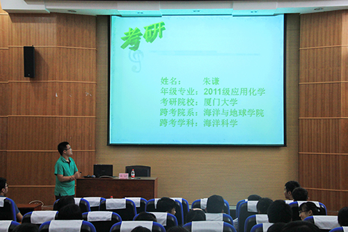 导航痕迹 当前位置: 首页 >> 新闻资讯 >> 学院新闻 >> 正文 朋辈领航,助力梦想――我院举行考研经验交流会 作者: 发布日期:2015-06-18 浏览次数: 为进一步提高我院学生的考研积极性,帮助同学们明确考研方向、坚定考研目标、学习考研经验,6月17日下午,我院在雁山校区12报告厅举办了2015年77779193永利官网集团考研经验交流会。我院2015年成功考取研究生的学生代表张芮、朱谦、陈雪妮在会上做了经验交流。 交流会上,张芮以自己的考研复习计划为例,针对报考途径、流程、注意事项做了详细的介绍,同时结合自身经历,总结了考研成功的方法和复习技巧;朱谦则用结合自身跨专业考研的经历,从兴趣爱好以及实际能力等方面,对同学们的专业选择进行指导,并鼓励同学们既然选择了考研,就一定要坚持信念不动摇;最后陈雪妮则从免试攻读的角度介绍了免试攻读硕士的申请流程及需要具备的条件,鼓励同学们打好学习基本功,时刻做好准备。 本次交流会的举办不仅为正在准备考研的同学提供了一个难得的交流平台,也为低年级的同学提供了一个更加深入了解考研的机会,大大激发了同学们考研的积极性及自信心。 交流会现场(一) 交流会现场(二 ) 交流会现场(三) 上一条:【桂工讲坛】我院唐群博士应邀做题为“学习改变命运,考研改变人生”专题讲座 下一条:77779193永利官网集团、地球科学学院、信息科学与工程学院、测绘地理信息学院、艺术学院春季学期联合党校预备党员培训班开班典礼顺利举行