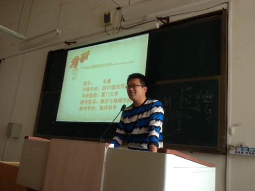 导航痕迹 当前位置: 首页 >> 新闻资讯 >> 学院新闻 >> 正文 【学风建设】我院举行应用化学专业学习交流会 作者: 发布日期:2015-04-03 浏览次数: 为了使2014级的同学对应用化学专业有进一步的了解,同时学习借鉴优秀毕业生的学习、工作经验,4月2日早上8点半,在雁山校区05301教室,应用化学2011级优秀学生代表为同专业14级的同学做经验介绍。出席本次经验交流会的有院党委副书记陶剑飞老师,应用化学2011级优秀学生代表陈雪妮,李佐,王羽玲,朱谦,张捷以及李旭涛同学。 交流会由陶剑飞副书记主持,她首先感谢几位优秀毕业生代表参加本次交流会,并希望同学们能把握住这次难得的机会,积极与学长学姐进行交流。接着,陈雪妮等6位11级优秀学生代表依次上台为大家介绍经验。作为班长的陈雪妮同学介绍了班级情况以及管理好班级宝贵经验;学生组织工作经验丰富的张捷和李旭涛同学与大家分享了他们在学生组织里学习到的各种知识技能与工作经验;今年以优异成绩考上厦门大学硕士研究生的朱谦同学详细向大家介绍了提高学习成绩的方法;李佐与王羽玲两位同学从大学生活与应聘工作两方面进行交流,鼓励大家要勇敢追求与尝试,强调人际交往的重要性,还向大家分享了应聘以及工作中所学习到的技巧和应注意问题。他们认真又不乏幽默的交流大让家受益匪浅。最后,本次经验交流会在大家热烈的掌声中圆满结束。 通过本次交流会,2014级应用化学专业的同学们不仅学到了生活、学习、工作等多方面的知识,更对自己未来要走的路有了更好的认识,对他们树立正确的学习目标有很大的帮助。交流会现场1交流会现场2 上一条:【学风建设】专题研究谋进步、合力育人促学风 ――化生学院召开2015年春季学期班主任学风建设专题工作会议 下一条:防城港市环境保护局副局长郑里华到访我院