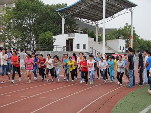 导航痕迹 当前位置: 首页 >> 新闻资讯 >> 学院新闻 >> 正文 77779193永利官网集团“体质最强班”系列活动启动仪式暨 “谁是大英雄”竞赛活动开幕 作者: 发布日期:2014-10-29 浏览次数: 为全面落实和推进将全民健身运动作为我校学生工作重点的要求,切实增强我院学子参加体育锻炼的主观能动性、形成良好的体育锻炼习惯、提升身体素质,为更好的将体育锻炼工作形成长效机制,经过两周晨跑测试及多次讨论,我院决定自本学期始在大一大二学生中组织开展“体质最强班”系列活动,并于2014年10月28日下午16:30在雁山足球场全面启动,并进行了首次“谁是大英雄”班级团体长跑大赛。学院党委副书记陶剑飞、团委副书记饶筠筠、各年级辅导员, 2013、2014级全体学生参加了此次活动。 启动仪式由陈文甫老师主持。首先,陶剑飞副书记致辞,她强调生命在于运动,作为新一代的有志大学生,应该用运动去点燃激情,以坚强的体魄去追逐梦想,并提出三点希望:第一,希望同学们明白体育锻炼的最终目的是为自身的身体健康;第二,主动科学健身,掌握健身的好方法,希望同学们制定科学健身方法,劳逸结合,循序渐进;第三,坚持每天运动,养成健身好习惯。其次,学院团委副书记饶筠筠老师对“体质最强班”活动方案进行了介绍,活动内容包括全民健身、晨跑活动、趣味球类运动、体测专项测试训练等主题,活动竞赛以运动与娱乐相结合的形式激起同学们的兴趣,制作新颖幽默的活动道具增加体育锻炼的快乐感,并通过各项考核评选出我院“体质最强班级”和“运动达人”,对在体育锻炼中表现突出的班级和个人进行奖励和表彰。随后,学生代表赵辉武同学进行发言,在发言中我们感受到了学生们热爱运动、健康运动的激情,并表明了坚持“每天锻炼一小时,健康快乐学习成长”的坚强决心。接着,在同学们高昂的欢呼声中首次开展我院 “谁是大英雄” 班级团体长跑大赛,以班级为单位,男女生分别进行1000、800米长跑运动,同学们都积极参与,个个精神饱满。长跑竞赛统计结果显示:一共有484名学生参加1000、800米长跑运动,其中测试优秀的学生占了28.75%,合格的学生占了63.75%,不达标的学生为7.5%。最后,同学们一起合影留念,将运动的汗水定格在这一刻,活动取得圆满成功。 生命无止境,运动无极限。此次活动的成功举办,响应了学校“走下网络,走出宿舍,走向操场”的活动主题,提高了同学们的体育运动意识,为全面提高大学生体质起到了良好的促进作用。陶剑飞副书记讲话热情高涨的同学们合影 上一条:扣好迈入社会的第一颗纽扣――校党委副书记、纪委书记陈贵英《如何读大学》专场报告 下一条:【迎评估,促学风】为你加油,助你成功――我院举办2014年考研英语辅导班