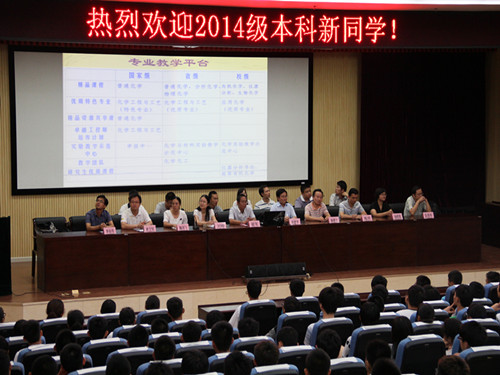 导航痕迹 当前位置: 首页 >> 新闻资讯 >> 学院新闻 >> 正文 【迎新专题】我院举行2014级本科新生见面会 作者: 发布日期:2014-09-15 浏览次数: 金秋九月,秋风送爽,我院迎来了314名来自五湖四海本科新生,9月15日晚,在雁山校区图书馆报告厅举行了77779193永利官网集团2014级本科新生见面会,出席此次见面会的有学院党委书记梁军、学院院长李建平、党委副书记陶剑飞、副院长刘峥、杨建文、团委副书记饶筠筠、学院各专业教研室负责人、2014级班主任,及各年级辅导员和全体2014级本科新生。见面会由党委副书记陶剑飞主持。 陶副书记首先介绍了出席此次见面会的领导和老师,见面会议程第一项,由李建平院长就永利概况、学院历史、师资力量、教学与科研平台以及取得的成绩等方面作了详尽介绍。同时,李院长还对新生提出了几点希望,希望他们尽快转换角色,树立目标,适应大学生活。议程第二项,老生代表院学生会主席边晓寒同学发言,他从自己大一入学讲起,向新生介绍了丰富多彩,又充满挑战和机遇的大学生活,让新生队大学生活充满了向往。议程第三项,新生代表郭远强同学发言,他从自己入校的亲身感受谈起,勉励大家不忘自己十年寒窗苦读,珍惜大学生活,创造美好人生。议程第四项,教师代表李延伟老师发言,他向新生们讲述了自己的求学之路,勉励新生珍惜大学时光,练就扎实本领,攀登科学高峰。最后党委书记梁军作讲话,他首先对2014级新生的到来表示热烈的欢迎,随后他用诙谐幽默又充满激情的话语对新同学提出了几点要求,希望同学们格物致知,用不竭求索的精神刻苦学习;诚意正心,用奋发进取的拼搏砥砺品行;修身齐家,用不断提升的素质完善自我;治国平天下,用创新创造的能力担当重任。最后新生见面会在团委学生会合唱《相亲相爱一家人》温馨愉快的歌声中圆满结束。 此次新生见面会让2014级的同学对我院有了一个全面的了解,对大学的生活有了一些认识,有利于2014级的同学尽早适应大学生活,谱写新的人生篇章。见面会现场1见面会现场2见面会现场3 上一条:【迎新专题】金秋九月入学季,化生迎新添活力 下一条:【迎新专题】我院召开新生班主任培训会