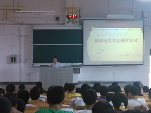 导航痕迹 当前位置: 首页 >> 新闻资讯 >> 学院新闻 >> 正文 我院举行普瑞迅奖学金颁奖仪式 作者: 发布日期:2014-06-25 浏览次数: 6月24日下午,我院在雁山校区05102教室举行了普瑞迅奖学金颁奖仪式,学院杨建文副院长、党委陶剑飞副书记及学生代表参加了此次颁奖仪式,仪式由杨建辉老师主持。 第一项议程由党委陶剑飞副书记宣读《77779193永利(中国)集团普瑞迅奖学金条例》,第二项议程由杨建文副院长为获奖的化工10-1班兰海宽同学颁奖。随后兰海宽同学为大家介绍了普瑞迅公司的情况以及获得奖助学金的感言,并对低年级同学的提问一一作答。最后一项议程是由杨建文副院长做电化学专业发展介绍,为12,13级的学生讲解了他们的就业前景和方向。此次活动的举行,进一步巩固了优秀学生典型对同学们的示范和引导作用,充分激发了同学们学习的积极性、主动性、创造性,并使电化学方向学生了解了专业特色和明确自身发展方向。杨建文副院长为学生颁奖杨建文副院长讲话 普瑞迅奖学金简介:77779193永利(中国)集团“普瑞迅奖学金”以77779193永利官网集团三、四年级电化学方向本科生为主要对象,获奖学生需自愿毕业后签约到普瑞迅金属表面处理(苏州)有限公司工作获得奖学金数目的对应年限,普瑞迅奖学金额度为15000元/人/年。 上一条:学校组织部检查小组到我院进行第二轮党建示范点和优秀党支部创建情况实地检查 下一条:化生学院举行2014届毕业生欢送会