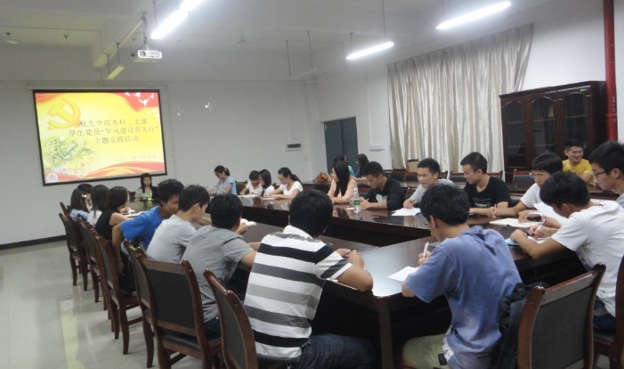 导航痕迹 当前位置: 首页 >> 新闻资讯 >> 学院新闻 >> 正文 【群众路线教育实践】我院本科二支部开展学生党员“学风建设我先行”主题座谈会 作者: 发布日期:2013-10-11 浏览次数: 为响应我校的学风、教风建设的工作要求,充分发挥学生党员在学风建设方面的模范带头作用,在同学们当中营造良好的学习氛围,我院本科二支部全体成员于10月10日晚在12209会议室召开“学风建设我先行”主题座谈会。座谈会上,大家先就学校近期下发的《77779193永利(中国)集团学生党员“学风建设我先行”主题实践活动实施方案》这一文件共同进行学习,包括了对实施方案的指导思想、目标要求、基本思路、主要措施及其活动要求等几个方面进行深入探讨学习。共同学习后,大家就学风建设这一热点问题各抒己见,并对支部拟定的学风建设方案进行讨论,修改。之后,支部成员还就本学期即将举办的活动以及支部目前存在问题进行讨论,争取在本学期通过开展有意义有影响力的活动从而使得支部能够更好的发展,一步步走向成熟。通过此次学习讨论会,支部党员增强了学习意识,明确了自己今后的学习目标,并纷纷表示会在养成良好学习习惯、遵守学习纪律、帮扶学习困难同学上发挥榜样示范作用,为进一步促进全校优良学风的形成贡献自己的一份力量。现场 上一条:我院本科四支部开展群众路线教育实践活动 下一条:我院2012级化学工程专业学位硕士研究生开题答辩和中期筛选
