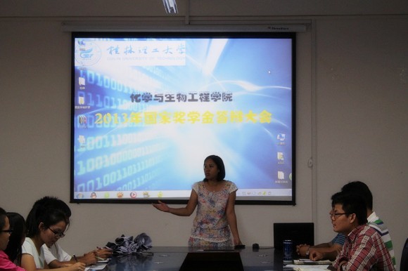 导航痕迹 当前位置: 首页 >> 新闻资讯 >> 学院新闻 >> 正文 我院举办2012-2013学年度国家奖学金答辩会 作者: 发布日期:2013-10-09 浏览次数: 为了充分体现国家奖学金评选工作的公正公开公平原则,给我院学生提供一个展现自我、互相交流的平台,我院于10月8日中午在12209 教室举行2012-2013学年度国家奖学金答辩会。学院党委副书记陶剑飞与各年级辅导员担任嘉宾,各班级同学代表一起参加了答辩会并担任大众评委。 答辩会上,七名候选同学依次上场,通过PPT现场解说的方式向大家展现自己优异的成绩以及丰富多彩的科技活动、社会实践以及大学校园文化生活,选手展示完毕后,还有现场观众提问环节,让在场同学与国家奖学金答辩人进行互动交流。整场答辩会历时一个小时,选手们用积极向上、乐观自信的精神风貌为大家展示了一幅幅写满辉煌的大学画卷,精彩的表现博得大家的热烈掌声。答辩会最后,陶剑飞副书记发言,她充分肯定了各位答辩选手所作出的努力,并表示感谢,同时陶副书记也指出了答辩过程中的一些不足,并希望在场同学能够从本次答辩会中向优秀的人学习,借鉴经验,在自己的今后大学生活中有所收获,同时她也希望今后能有更多的优秀同学能参与到国家奖学金答辩会中来,为大家展示自己最精彩的一面。 据悉,本次国家奖学金的评比结果将采用嘉宾评委打分以及大众评委打分两个板块综合得出。本次国家奖学金答辩会的举办,不仅锻炼了答辩选手的表现能力,也为我院广大学生树立了学习的榜样,营造了一种创先争优、拼搏上进的良好氛围。同时这也体现了我院对国家奖学金评选工作的高度重视,为国家奖学金的评比能够公平公正公开地进行提供了良好的保障。学院党委副书记陶剑飞发言答辩会现场 上一条:我院2012级化学工程专业学位硕士研究生开题答辩和中期筛选 下一条:我院举行“卓越工程师教育培养计划”班面试会