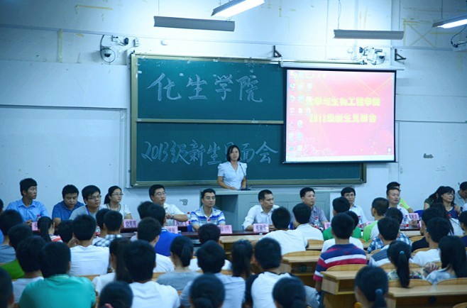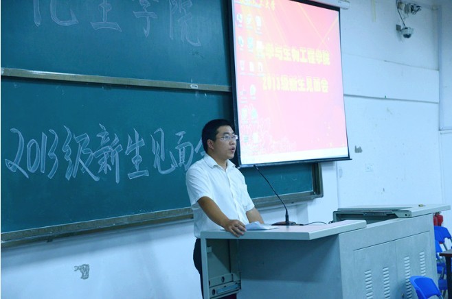 导航痕迹 当前位置: 首页 >> 新闻资讯 >> 学院新闻 >> 正文 我院举行2013级本科新生见面会 作者: 发布日期:2013-09-16 浏览次数: 金秋九月,桂花飘香,又是一年新生入学时。9月15日晚七点半,我院在雁山校区06207教室举行了2013级新生见面会。出席本次见面会的有学院党委书记胡祖生、党委副书记陶剑飞、学院院长李建平、副院长张淑华、副院长杨建文、团委书记周德海、学院各专业教研室负责人、各2013级班主任、各年级辅导员以及全体2013级本科新生。见面会由党委副书记陶剑飞主持。首先,陶副书记为大家一一介绍了出席本次见面会的领导和老师,接着,学院李建平院长就学院概况、学院历史、师资力量、教学与科研平台以及取得的成绩等几个方面作了介绍。同时,李院长还对新生提出了几点希望,希望他们尽快转换角色,树立目标,在大一要打好基础,为今后的学习做准备。随后,院学生会主席张海敏同学、13级新生陈鼎元同学分别作了发言。之后,教师代表李霞老师通过分享自身的学习以及工作经验,希望新生在未来的大学生活中能够学有所成。最后,党委书记胡祖生发言。胡书记首先代表学院全体师生对2013级本科新生的到来表示热烈的欢迎。然后,他对新生提出了几点要求,一是要学会学习,重视学习,二是要学会珍惜时间,不要虚度大学四年的时光,三是积极参加各种课外活动,提高自身素养。新生顿时起了强烈的共鸣,纷纷致以热烈的掌声,见面会在同学们热烈的掌声中圆满结束。见面会后,2013级辅导员周德海老师就接下来几天的日程做了布置。衷心祝愿2013级新生能够以积极的心态、饱满的热情迎接自己的大学生活,谱写新的篇章。学院党委书记胡祖生发言学院院长李建平为新生做学院介绍学院党委副书记陶剑飞主持见面会老生代表张海敏同学发言新生代表陈鼎元同学发言教师代表李霞老师发言团委书记周德海老师做工作布置见面会现场 上一条:【群众路线教育实践】丹桂飘香金秋时,化生迎新添活力 下一条:我院分工会积极备战羽毛球团体赛并取得开门红