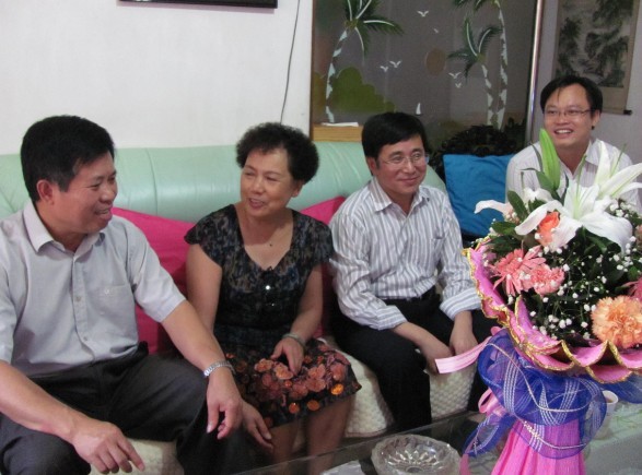 导航痕迹 当前位置: 首页 >> 新闻资讯 >> 学院新闻 >> 正文 教师节来临之际我院慰问退休教师代表 作者: 发布日期:2013-09-11 浏览次数: 9月9日下午,在第29个教师节来临之际,我院党委书记胡祖生、院长李建平、学院分工会干部一行看望慰问了我院退休教师代表刘长久老师和粟玉华老师。 在两位退休教师代表的家里,学院领导给他们送上鲜花和慰问品,送去了学院的关怀和温暖及节日的诚挚祝福,对他们为学院的建设发展作出的贡献表示敬意和感谢。慰问中,学院领导关切地询问了他们的生活情况,并就学院发展建设中的相关工作进行了交流,退休教师代表们衷心感谢学院对他们的关怀与体贴并祝全院在职教工教师节快乐,并表示今后将继续关注学院的发展建设工作,与其他退休教师一道,为学院的建设和发展积极建言献策。 学院领导慰问刘长久老师(中)学院领导慰问粟玉华老师(左二) 上一条:我院分工会积极备战羽毛球团体赛并取得开门红 下一条:【群众路线教育实践】我院召开党的群众路线教育实践活动动员大会