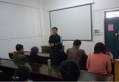 导航痕迹 当前位置: 首页 >> 新闻资讯 >> 学院新闻 >> 正文 我院成功举行第五届研究生会换届大会 作者: 发布日期:2013-03-15 浏览次数: 3月14日中午,我院研究生会在雁山校区12栋教学楼研究生教室举行第五届研究生会换届大会,杨晓老师作为特邀嘉宾与全体研究生会成员参加了本次大会,会议由研究生会副主席杨莉主持。会议伊始,第四届学生会主席周财斌同志对上一年研究生会的工作进行简要的回顾和总结,并以图片的方式展现上一届全体研究生工作成果;春风过后,薪火相传,新一届学生会主席温胜山同志代表全体研究生成员上台发表了就职感言,感谢老师与上届研究生会全体成员的信任与栽培,表示新一届研究生会干部将承前启后,在继承上一届学生会拼搏进取精神的同时,发扬我研究生会的优良传统,努力将我院研究生的各方面工作提升至一个更高的层面。会议以杨晓老师对我研究生会全体成员希望寄托结束,诉述上一届研究生会的工作热情与态度,点出我研究生会特色,并寄语新一届研究生成员践行不怕苦不怕累的精神,做到兼顾学习与工作,磨练意志,成为时代发展的人才。最后杨老师为上一届研究生会全体成员颁发任职聘书并留影;与会全体成员进行合影,也为新老一届研究生会成员顺利交接画上一个圆满句号。杨晓老师在换届大会上讲话上届研究生会主要干部获任聘书后合影出席会议新老研究生会成员合影 上一条:化生学院分会召开“两代会”筹备工作会议 下一条:我院开展团委学生会干部座谈会