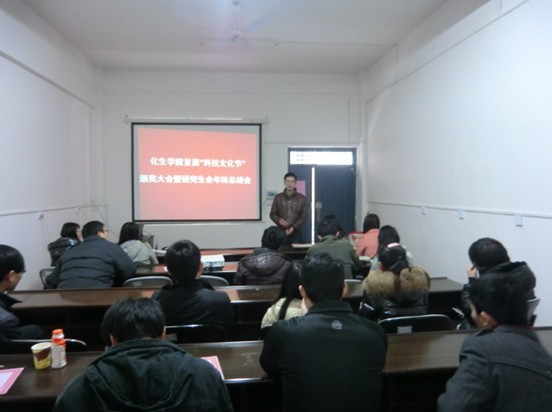 导航痕迹 当前位置: 首页 >> 新闻资讯 >> 学院新闻 >> 正文 我院研究生会成功举行首届“科技文化节”颁奖大会 作者: 发布日期:2013-01-18 浏览次数: 1月17日中午,我院研究生会在雁山校区12栋研究生教室举行了化生学院首届“科技文化节”颁奖大会暨研究生会年终总结会,学院全体研究生会成员参加了此次会议。 会议以观看“科技文化节---DV摄像大赛”的获奖视频开始,视频为大家展示了我院红外光谱仪、X射线衍射仪和荧光分光光度计等重大仪器的使用方法,令同学们受益匪浅。随后,研究生会主席周财斌同志为获奖的同学颁发了荣誉证书并向他们表达了衷心的祝贺。 接着,研究生会各部门部长就研究生会过去这一年来的工作情况作了一个简单的总结,大家都表示在新的学期内会再接再厉,继续努力将我院研究生的各方面工作提升至一个更高的层面。 本次会议让广大研究生同学很好的分享了“科技文化节”的成果,让大家掌握了多种重大仪器的使用方法,增长了同学们专业素养,为大家日后的科研工作开展打下了的基础。此外,研究生会通过对本学期各方面工作的总结,为下一学期研究生会各方面工作的顺利开展提供了借鉴。 大家观看过去一年工作的影像 主席周财斌作年终总结 获奖同学合影 上一条:化生学院举行2013年迎新春欢庆会 下一条:我院举行广西区创新创业训练项目中期检查答辩会