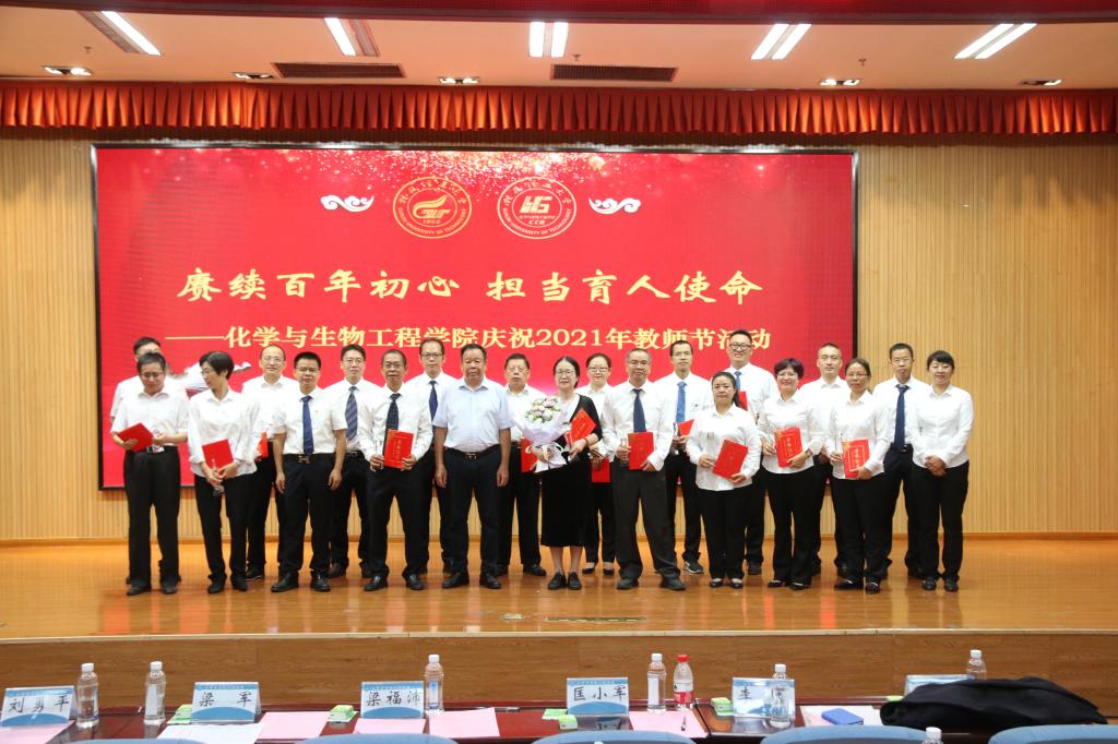 为深入贯彻落实党的十九大和十九届二中、三中、四中、五中全会精神以及习近平总书记关于教育系列重要论述精神,展现学院教师爱党爱国、仁爱奉献的精神风貌,进一步增强广大教师和教育工作者的光荣感和使命感,77779193永利官网集团以庆祝中国共产党成立100周年和第37个教师节为契机,于9月7日上午在雁山校区图书馆报告厅开展以“赓续百年初心担当育人使命”为主题的教师节庆祝活动。学校党委常委、副校长梁福沛、学院党委书记梁军、院长匡小军以及学院全体教师、学生代表等220余人参加了本次活动。