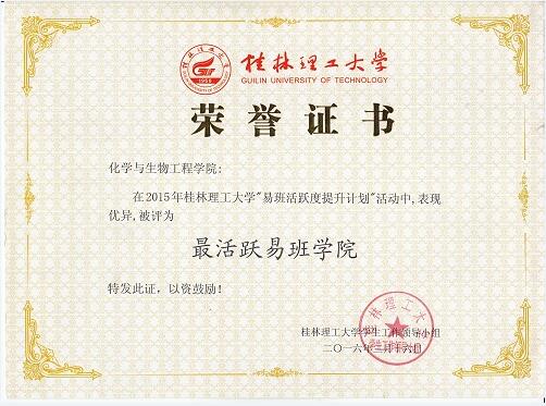 我院全体师生在本次参与易班活跃度提升计划中活跃度极大,经过层层评选,我院以全校第一的好成绩,被评为“最活跃易班学院”,12级辅导员何宗辉老师荣获“辅导员易跑达人” 称号,我院共有6名同学(总数位列第一)获得了“易班达人”称号,这也是我院加入易班建设以来,我校对化生学院全体师生在易班线上活跃度提升创造更好的成绩给予的充分肯定。