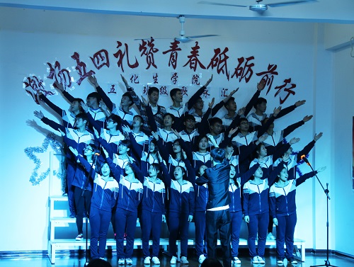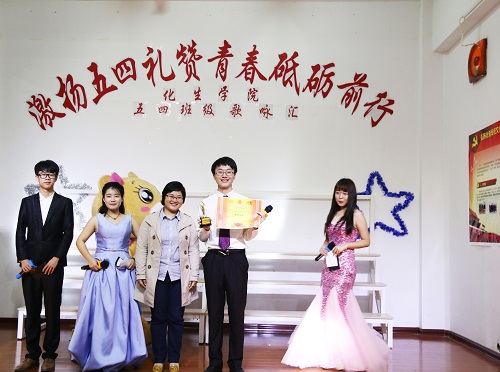 本次歌咏汇,生物工程2014-2班演唱的《马克思是个90后》,以现代的多元素创演,独特的领唱、成功俘获评委观众的心,夺取桂冠。化工14卓越班指挥潘帅池以精准的打点,有力、标准的指挥,获得“最佳指挥员”荣誉称号。