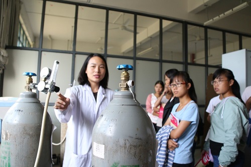 在志愿者的引导下,同学们分别到生物分析与传感器实验室、纳米材料电化学实验室、天然产物实验室、生物转化实验室和电解电镀工艺实验室、中试室等实验室进行参观。相关工作人员以及部分研究生与参观学生进行亲切交流,并做实验示范,向同学们介绍了部分实验的简单操作、实验室的整体规划及建设情况,表示我院在未来发展中将会建立一个更高的实践平台,借此提高同学们的实践能力。