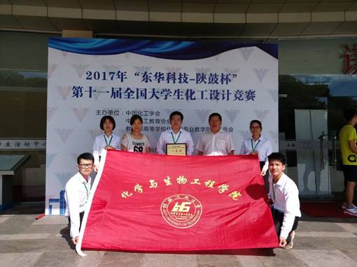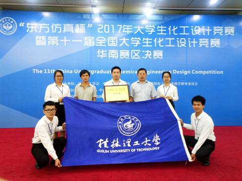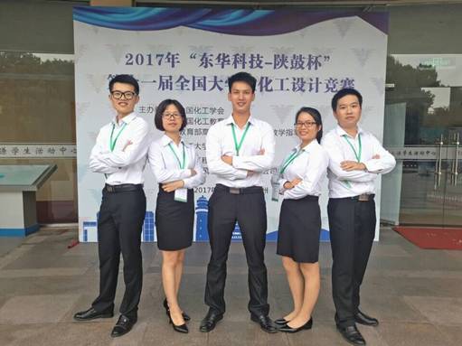 第十一届全国大学生化工设计竞赛分别于今年8月份在珠海中山大学、杭州浙江大学进行了华南赛区、全国总决赛。我院一共组成了17支队伍参赛,进入华南赛区总决赛由42所高校的48支队伍展开了两轮激烈角逐,产生了进入全国总决赛的9支队伍。我院2014级卓越班本科生廖坚良、陈志和、邓家炬、林小芳、陈燕萍组成的代表队在李和平、黎燕、吕奕菊、王晓娟、刘峥、杨文等老师指导下设计的作品“NHD脱硫-甲醇合成法年产4.5万吨甲硫醇项目设计”经过师生共同努力,以其出色的设计作品和精彩的现场答辩脱颖而出,勇夺赛区特等奖;并以广西高校唯一的一支队伍进入全国总结赛,荣获全国总决赛一等奖。