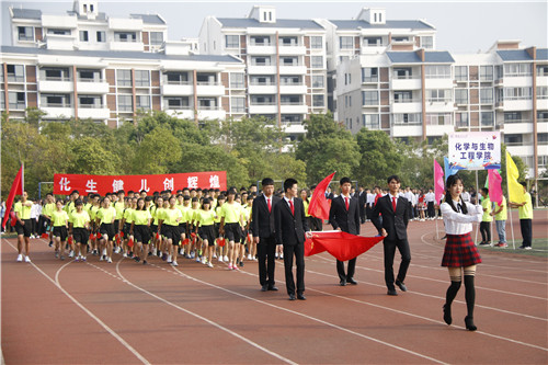 26日上午8点半,运动会正式拉开帷幕,在田径赛场上,风和日丽,彩旗飘扬,我院由103名运动员组成的方块队高举院旗,迈着整齐的步伐,伴随着“青春如火,化生有我;激情澎湃,化生不败”的口号,昂首走过主席台,展现出了我院运动员朝气蓬勃的风貌。
