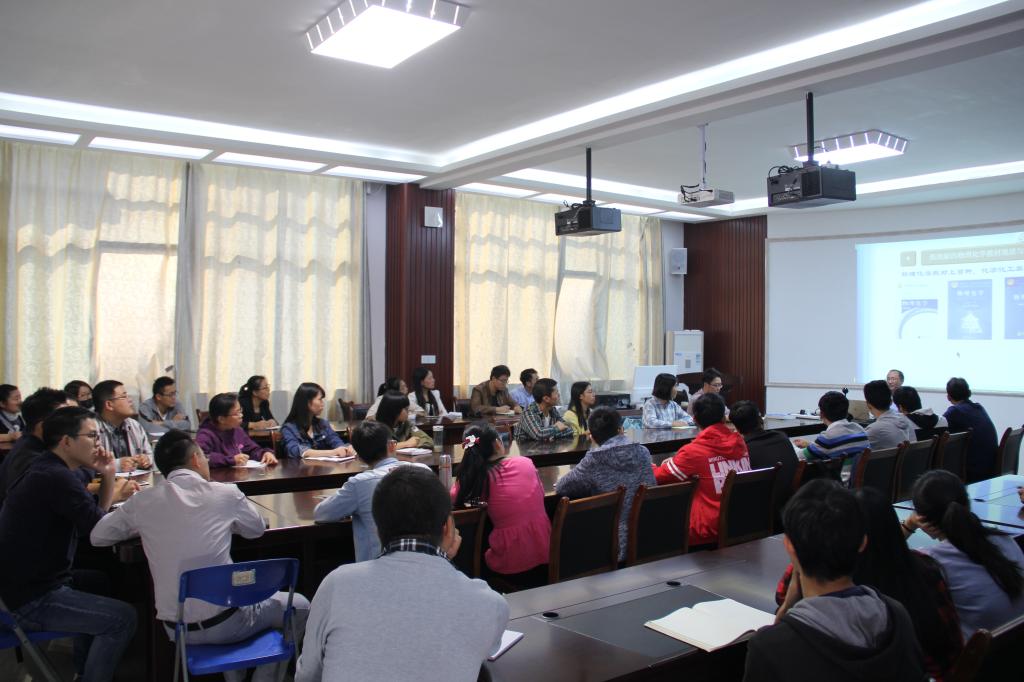 导航痕迹 当前位置: 首页 >> 新闻资讯 >> 学院新闻 >> 正文 湖南大学余刚教授应邀到我院讲学 作者:温玉清 发布日期:2017-11-06 浏览次数: 11月3日上午,应我院邀请,湖南大学余刚教授到我院讲学,在雁山校区12号楼12217多功能厅作了题为“网络时代的教材变革与调动学生主动学习的方法”的学术报告。我院新进教师和电化学教研室教师及相关专业的学生到场聆听了该报告。 报告会中,余刚教授介绍了在当今网络时代老师如何教出效果?学生如何学出效果?特别用《物理化学》这门课为例,重点介绍了教师如何调动学生主动学习的方法和技巧,讲解过程得到了师生们强烈的反响。报告结束后,师生们与余刚教授进行了教学上和学习上的相互交流。本次报告,对提高教师的“教”和学生的“学”起到了很大的帮助,扩大了师生们的视野。 余刚教授在作报告 报告会现场 上一条:我院到灌阳县新街镇三树村开展结对扶贫工作 下一条:我院召开退休教师代表座谈会