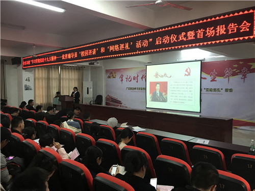 12月18日,我校学习十九大精神辅导员宣讲活动启动仪式暨首场报告会在雁山校区图书馆报告厅举行,我院两位辅导员分别作了报告。