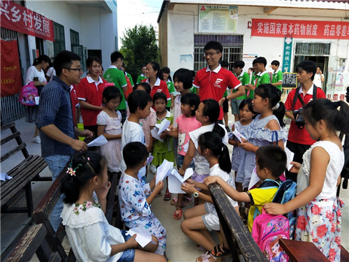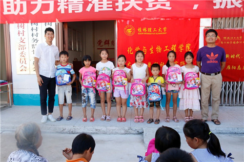 导航痕迹 当前位置: 首页 >> 新闻资讯 >> 学院新闻 >> 正文 【精准扶贫】我院到三树村开展爱心捐赠活动 作者:何宗辉 发布日期:2018-07-19 浏览次数: “如果能有一套水彩笔就好了,真想每天拿着彩笔画出自己喜欢的图案”在15号实践队员走访留守儿童家中时一名儿童如是讲到。16日上午,我院暑期社会实践队在三树村村委举行了“助力精准扶贫,振兴乡村发展”为主题的捐赠仪式。三树村第一书记杨晓与学院何宗辉,陈文甫,刘宇辉三位老师一同为孩子们送上文具。 在孩子们都领到新文具之后,实践队员开始把另外一个为孩子们准备已久的惊喜拿了出来,作为化学专业的实践队员们,他们利用自己的专业知识,为孩子们准备了一场属于他们自己的化学实验秀。简单的酸碱指示剂实验、歧化反应,仿佛为充满童真的孩子们打开了化学世界的大门,期待他们以后在元素世界的探索历程。 实践队陈文甫老师还将现场的小朋友临时组成了一个名为“007”的新班级,陈老师语重心长地对着他的小学生们说道:“要好好利用这些文具,绘画出自己的精彩人生”。 陈老师还带着他的新学生们一起叠纸飞机,并在飞机上写上了自己的理想,让梦想插上翅膀,迎风远航❗让我们一起祝福他们吧❗ 最后,在老师和同学们在“助力发展,放飞梦想”的口号中放飞了自己手中的纸飞机,捐赠仪式到此落下帷幕。据悉,这次捐赠的文具,是我院师生党员特别为本次捐赠仪式筹集的一笔特殊党费,他们希望这些文具可以发挥更高价值,为三树村的小朋友的学习提供帮助。 第一书记杨晓(右一)何宗辉老师(左一)为学生送上文具 与孩子们一起 演示化学小实验 一起放飞梦想 上一条:学院校友会秘书长陶剑飞一行赴广东走访校友企业 下一条:【精准扶贫】我院学子走进基层,调研三树村脱贫步伐